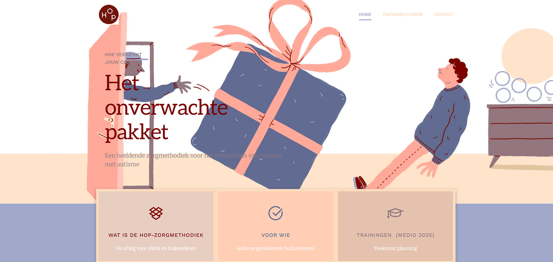 For the HOP Care Methodology of autism specialist Saskia van Grinsven I made all the illustrations. They are published in a book, a workbook and on the website https://hopzorgmethodiek.nl/